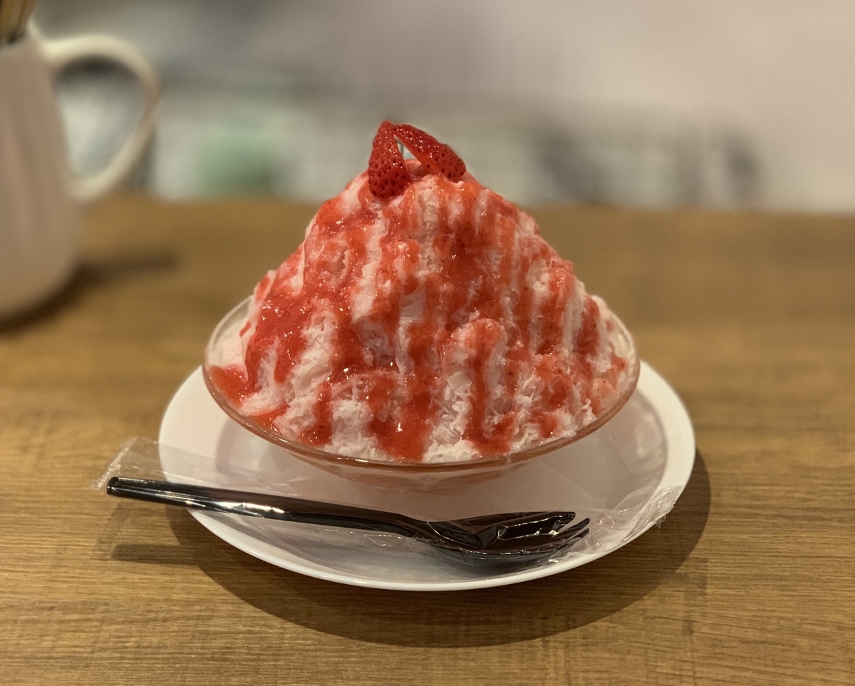 苺ソースの酸味、ミルクのかき氷が実にマッチしている。中にミルクアイスも入っている。甘酸っぱくて夏にぴったりなかき氷だった。